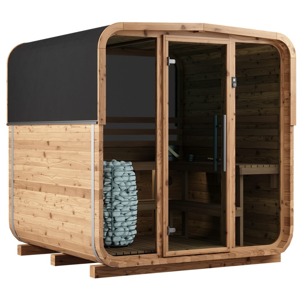 De cube sauna is de perfecte keuze voor wie houdt van een strak tuinontwerp. Het moderne model met rechte lijnen sluit prachtig aan bij hedendaagse woningen en minimalistische tuinen.