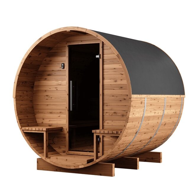 De barrel sauna is een echte klassieker. Door de ronde vorm ontstaat een natuurlijke warmtecirculatie waardoor de sauna snel op temperatuur komt en de warmte gelijkmatig wordt verdeeld. Dit zorgt voor een comfortabele saunabeleving en een gezellige, geborgen sfeer.